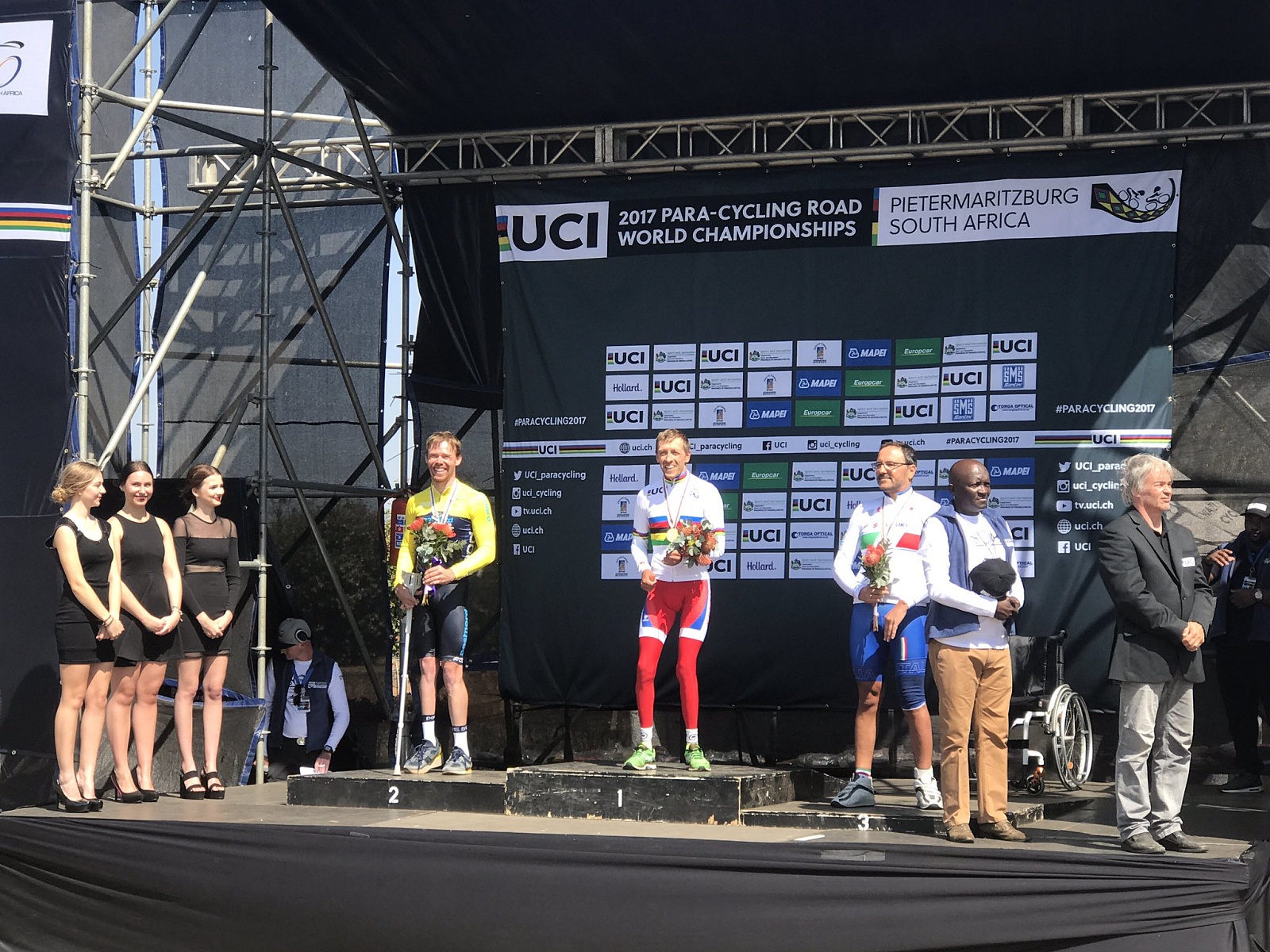 Дебютант чемпионатов мира, москвич Руслан Кузнецов (класс MH3) занял 17 место отстав от лидера на 5 минут 51,16 сек. Победителем в заезде стал чемпион XV Паралимпийских летних игр 2016 года в г. Рио-де-Жанейро (Бразилия), итальянец Паоло Сечетто /PaoloCecchetto/ (39:30,50), серебро у швейцарца Хайнса Фреи /Frei Heinz/, завершает призовую тройку 2-кратный бронзовый призер XV Паралимпийских летних игр 2016 года в г. Рио-де-Жанейро (Бразилия), канадец Чарлс Моро /Charles Moreau/.