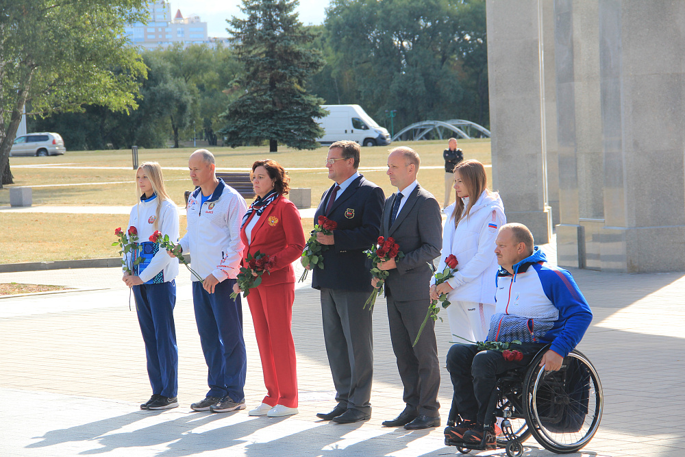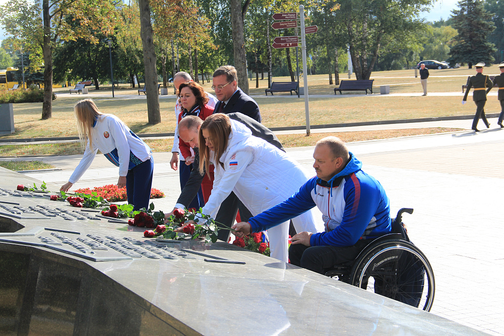 В рамках церемонии состоялось возложение цветов, в котором также приняли участие 6-кратный чемпион Паралимпийских игр Сергей Шилов, 3-кратная чемпионка Паралимпийских игр Маргарита Гончарова, чемпион Паралимпийских игр Игорь Фортунов и бронзовый призер Паралимпийских игр в Токио по легкой атлетике Елизавета Петренко.